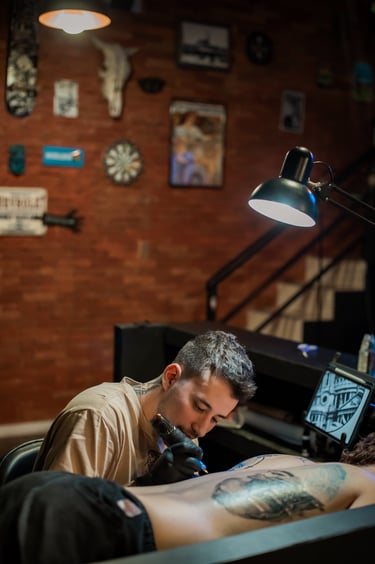 Nascido em Campinas, tenho 28 anos, me formei em engenharia e atuei na área por 4 anos, comecei a tatuar por curiosidade de como seria o processo e decidi largar tudo para viver disso. Hoje, 5 anos depois me sinto abençoado de poder viver com o que amo fazer.