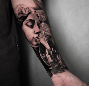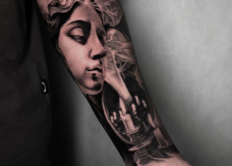 Tatuagens em realismo e coberturas detalhadas